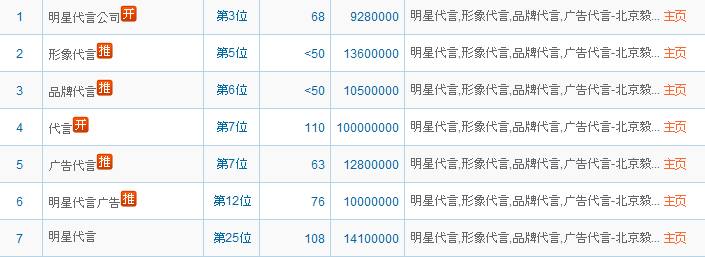 優(yōu)化要求:在百度,google等搜索引擎查找明星代言等相關(guān)關(guān)鍵字,能第一時間在全國各大網(wǎng)站拓印而出